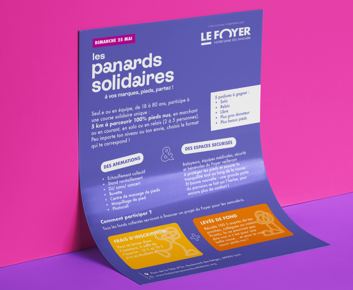 L'identité qui donne du souffle. Une course caritative, un logo tout en rondeur et des mascottes qui ne tiennent pas en place. Un univers coloré et ludique qui transforme l'effort en un moment de partage. C’est dynamique, bienveillant et conçu pour donner envie de bouger pour la bonne cause.